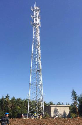 Angle-steel tower, regular quadrangular truss structure communication tower, using Q345B high-quality steel as the main tower body material, rigid structure, small deformation; angle steel splicing connection, light-weight parts, tower can be manually transported and installed at low cost. Maximum 6 layers of platform can be equipped, each platform supports 6 antennas.